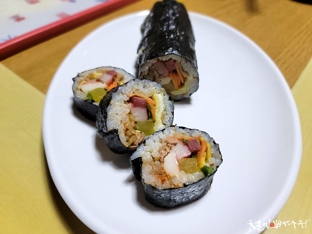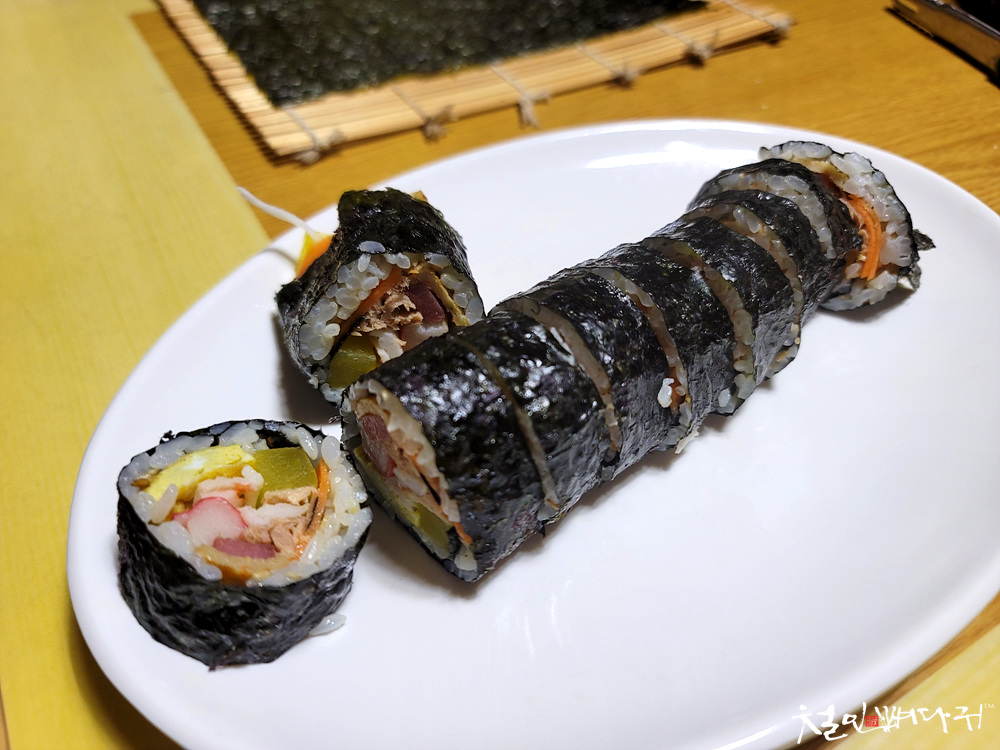 갖출 것 다 갖춘 김밥이 완성되어 갑니다.