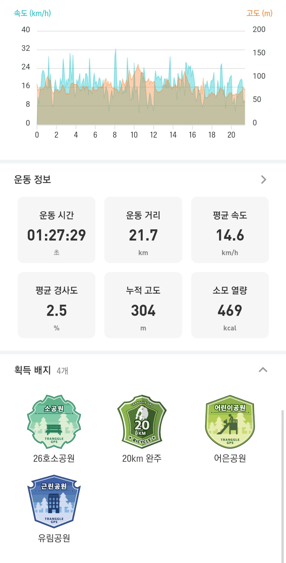 21.7km 정도를 자전거를 타고 돌아다녔는데,