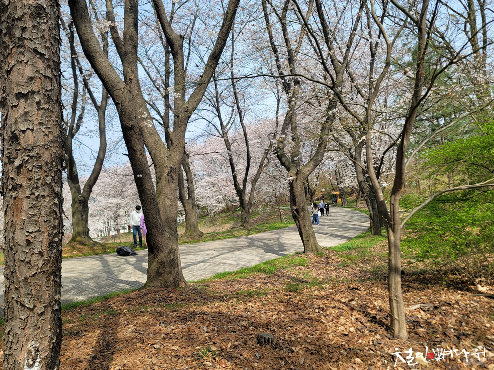 천변 위 산책길에는 벚꽃이 이쁘게 피어있습니다.
