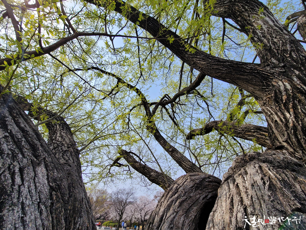 버드나무였는데, 굵은 한줄기에서 사방으로 퍼져나간
