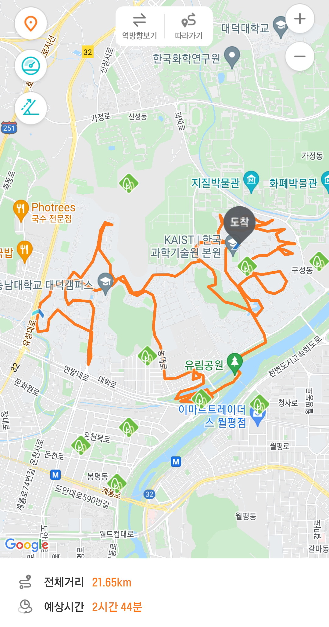 카이스트-충남대학교-유림공원까지