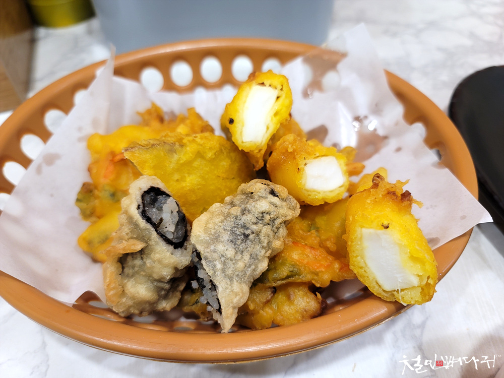 추가로, 김말이와 오징어튀김도 주문했습니다.