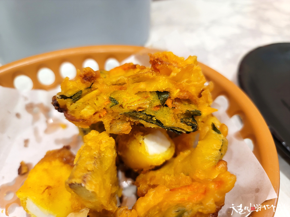 야채튀김은 두툼해서 빵을 먹는듯한 느낌입니다.