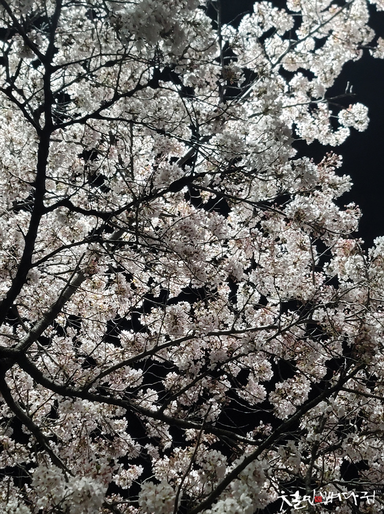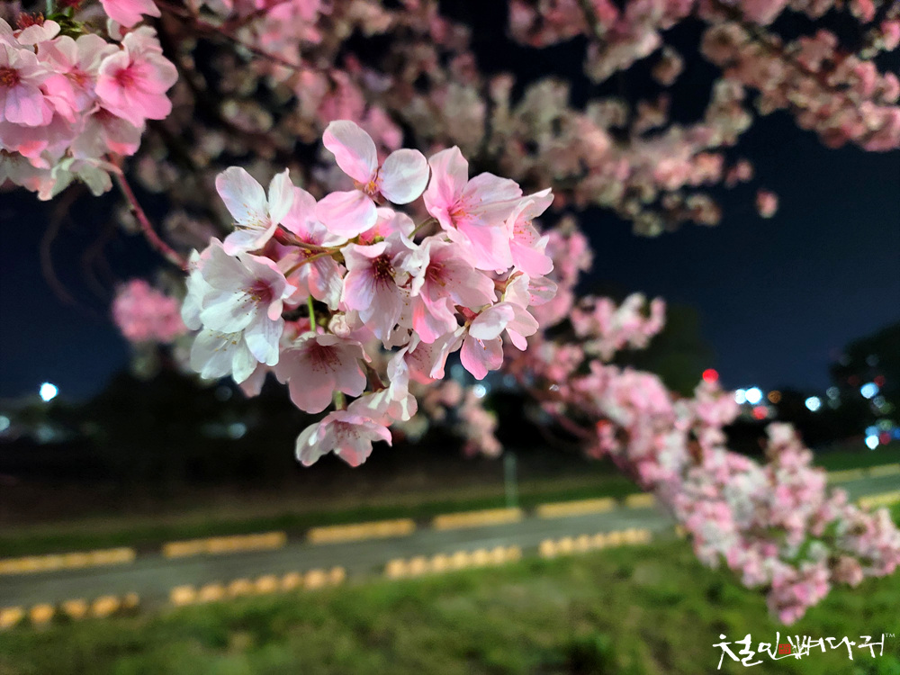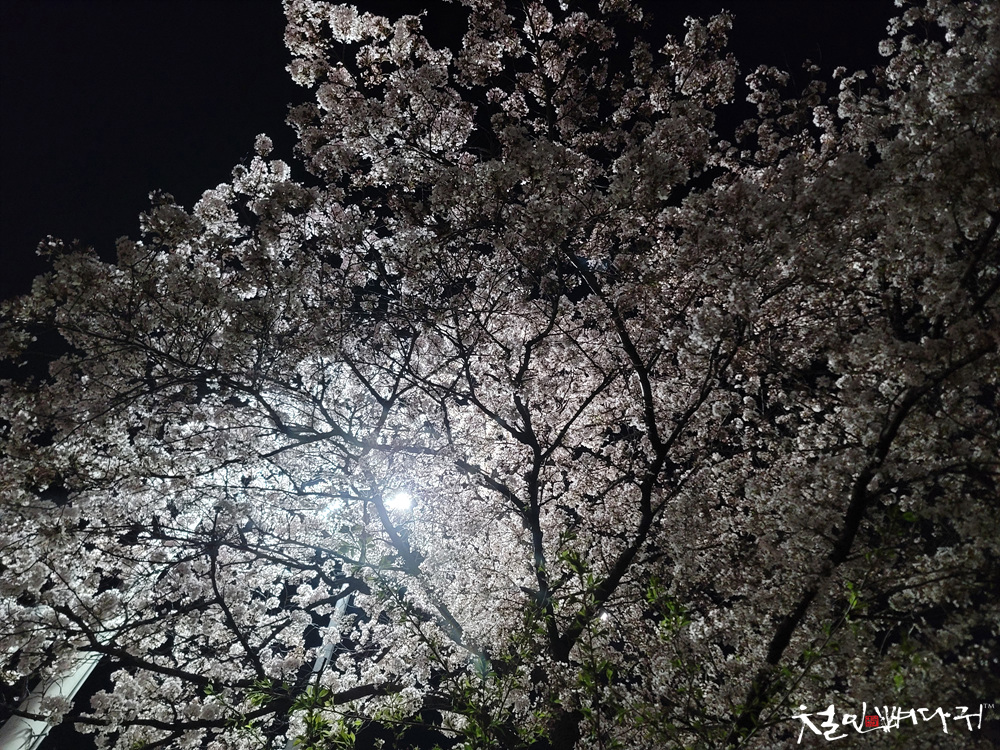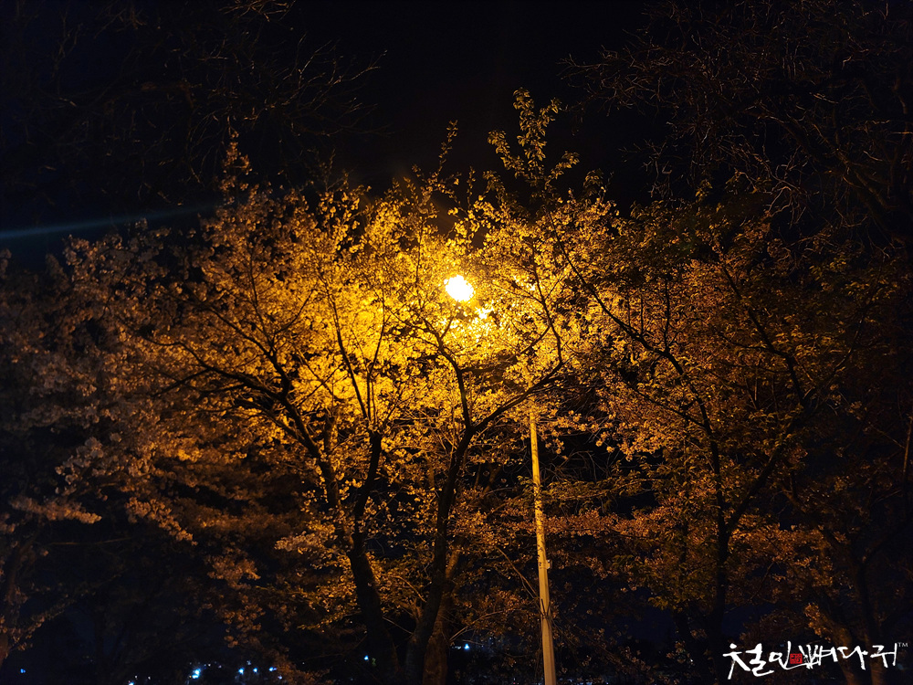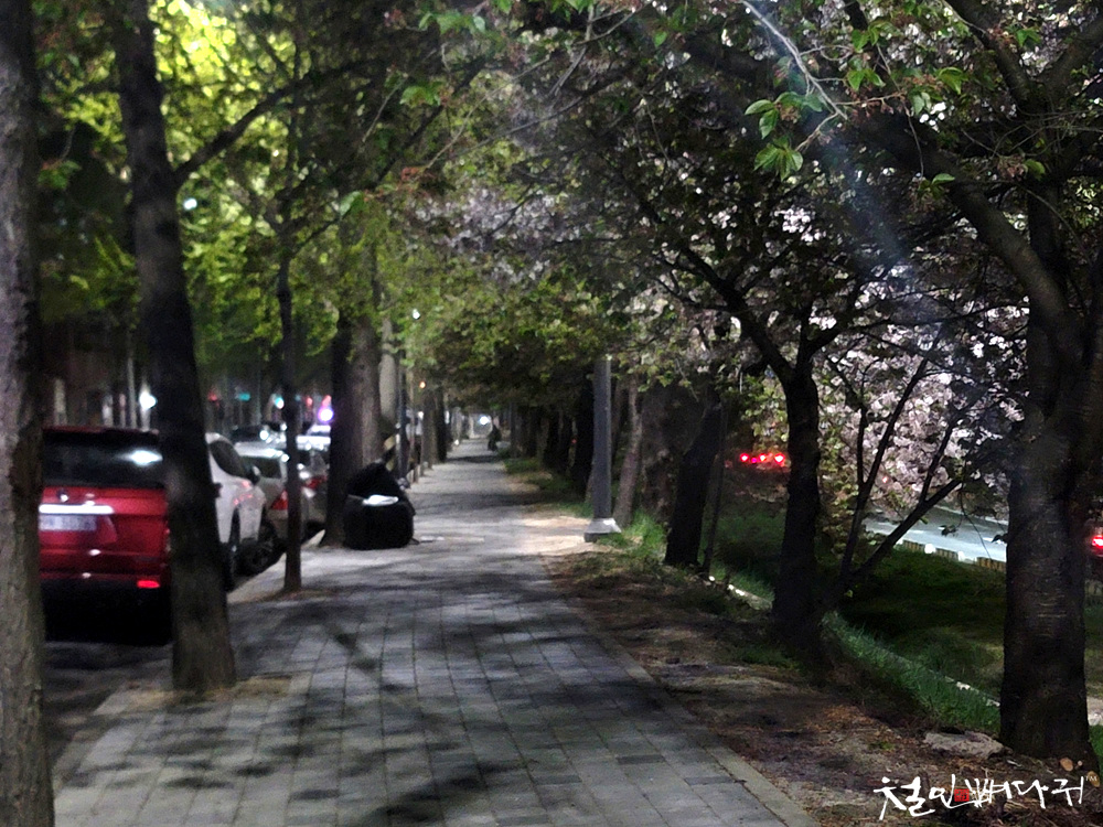 한밤중에 천천히 걸으면서, 남아있는 벚꽃도 보고,