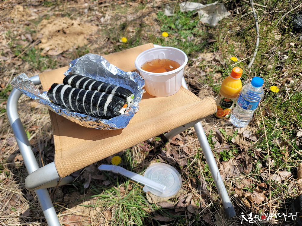 밭에 앉아서 따뜻한 햇살 쬐면서 김밥 먹는 것도 괜찮네요.