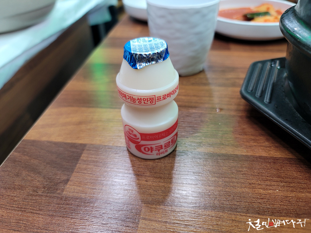 식사 마칠 때쯤 되니, 야쿠르트를 하나씩