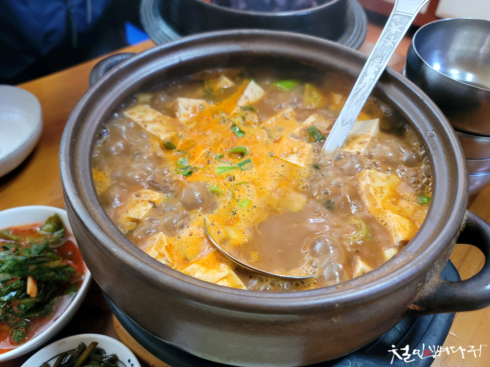 보기에는 청국장 같은 모습인데, 된장찌개였습니다.