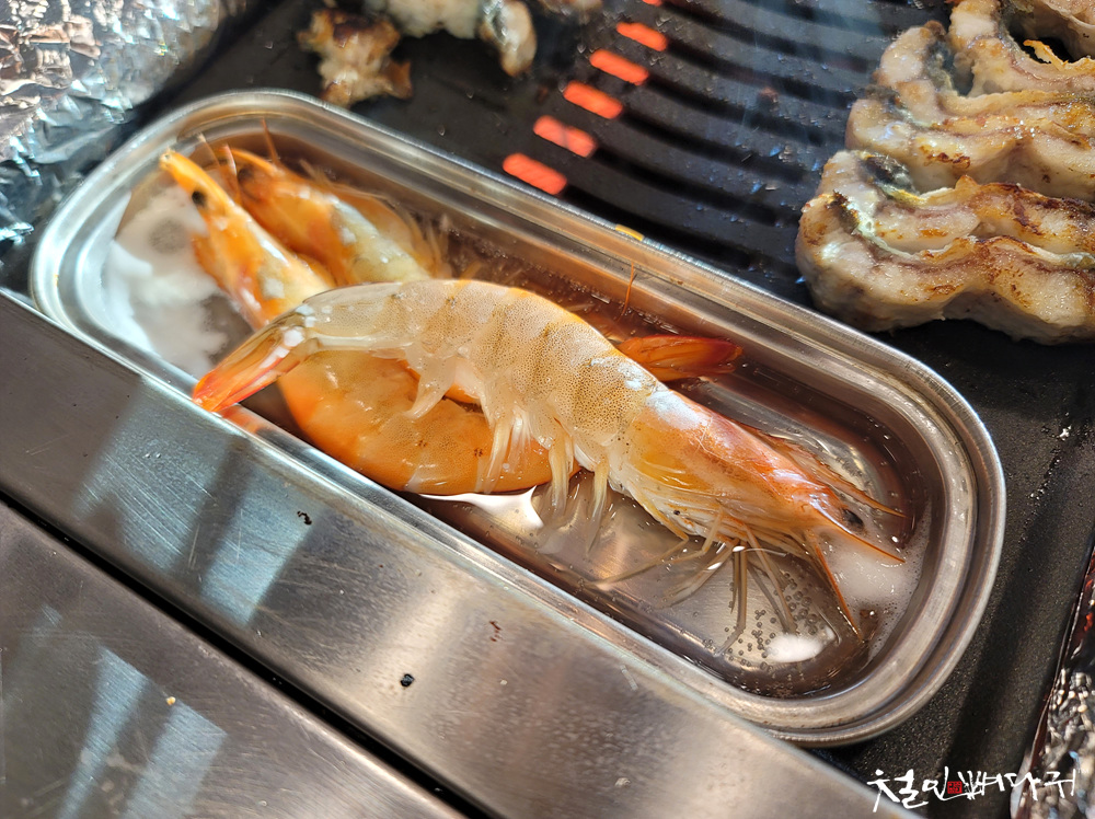새우가 익으면 먹었고,