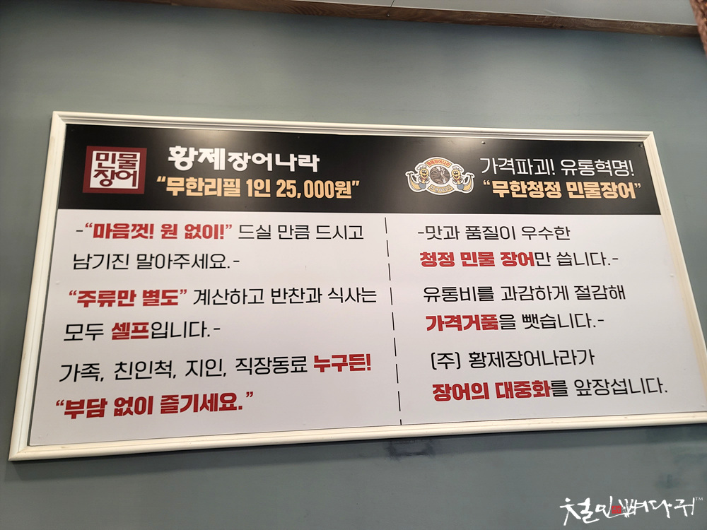 식당에 들어가면, 무한리필 가격은