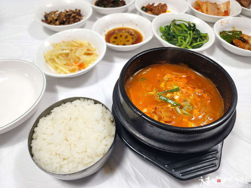 저녁에 도착해서 저녁밥으로 김치찌개를