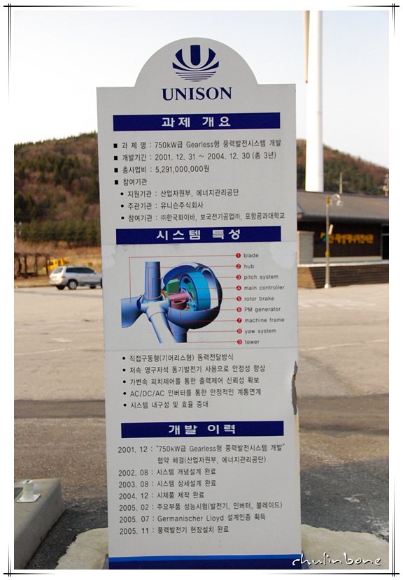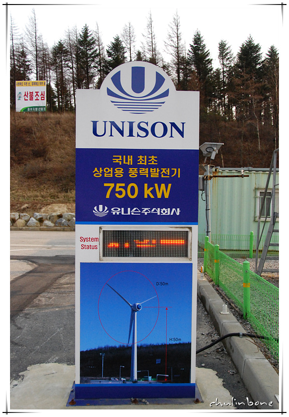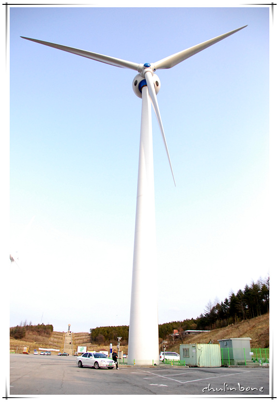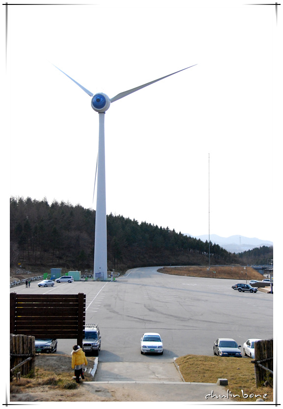 강원도 양떼목장 입구에 있던 풍력발전시설.