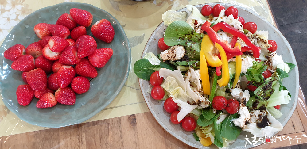 라코타치즈샐러드와 딸기, 양파절임 같은