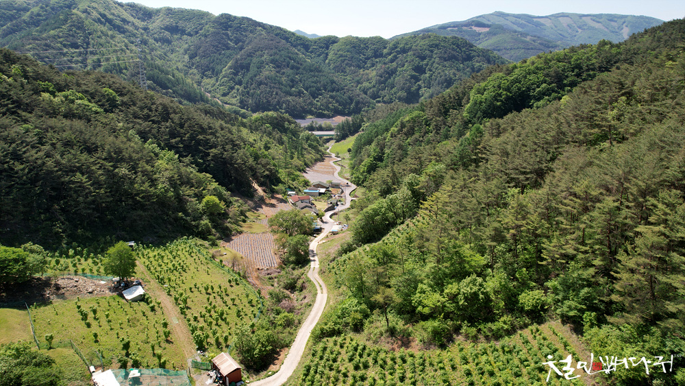 이 방향은 마을을 지나 산 위쪽에서