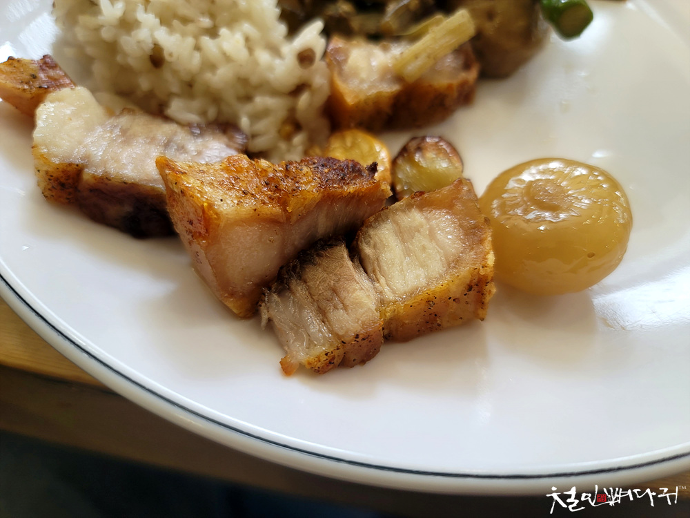 접시에 적당히 덜어서 맛있는 식사를 했습니다.