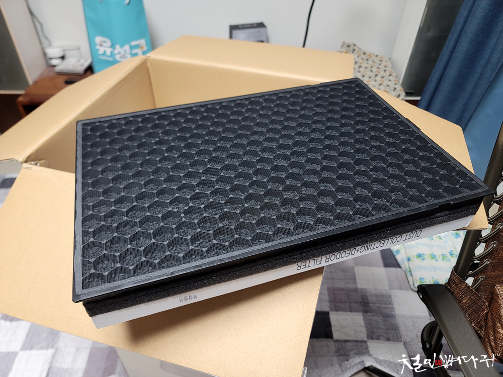 전면 뚜껑을 열면, 망사 필터 같은 것이 하나 있고,