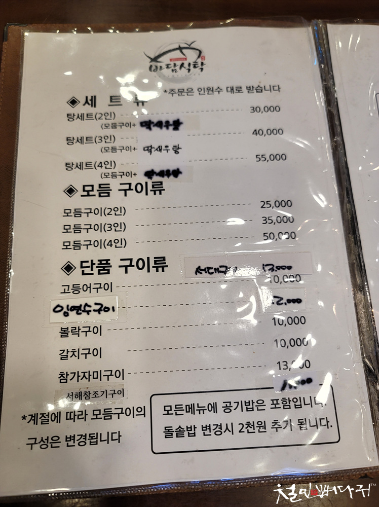 [대전식당] 바담식탁-탕세트3인(모듬구이+딱새우탕)서구.가수원동