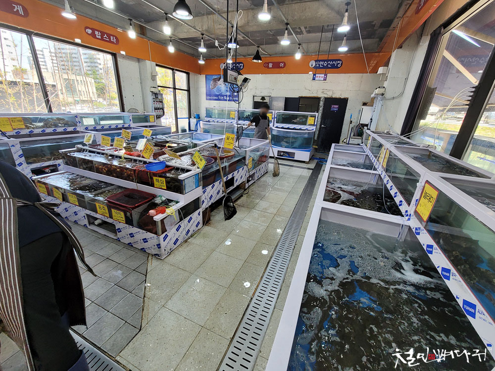 다른 곳의 큰 수산물 판매하는 곳보다 작지만