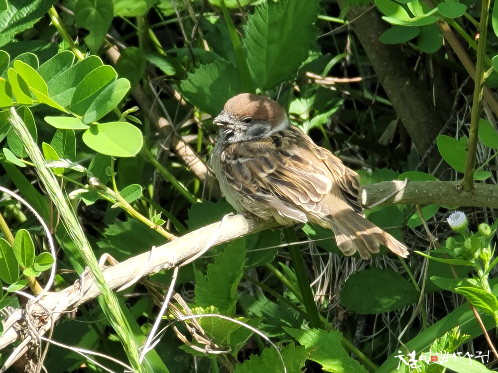 참새가 졸린눈을 가지고 간신히 앉아