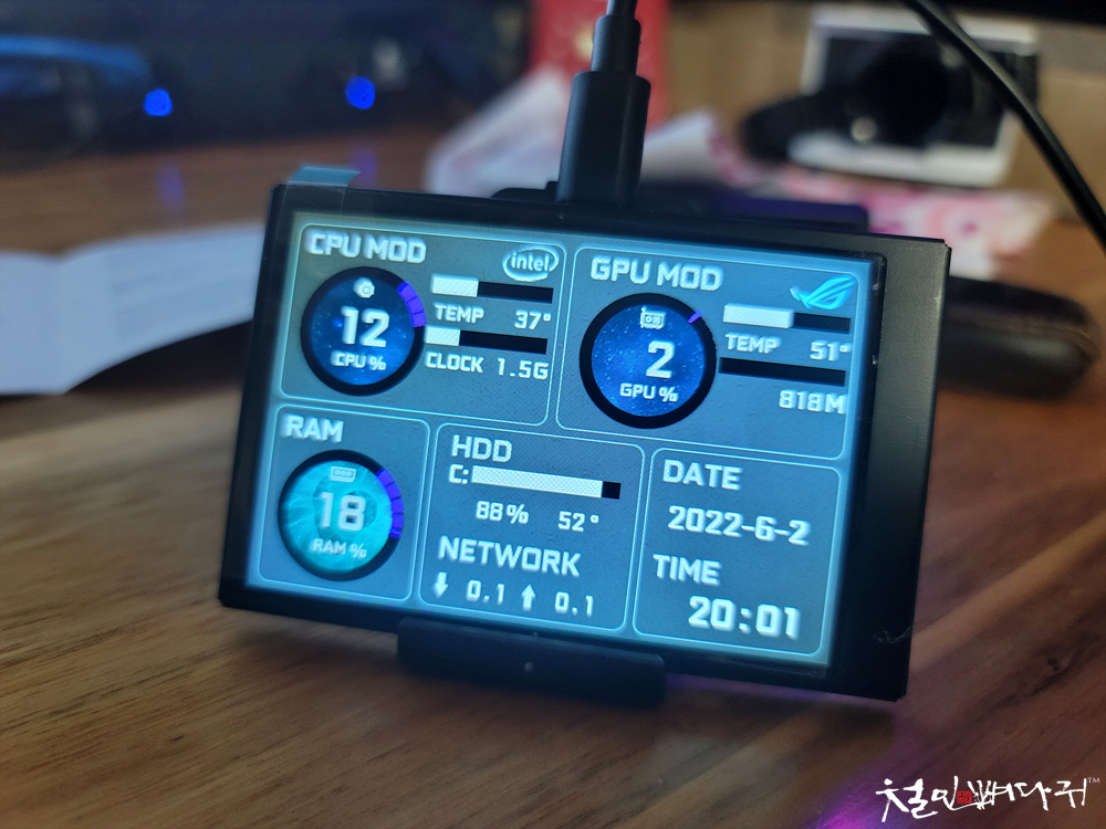 컴퓨터의 상태를 볼 수 있는 보조모니터입니다.