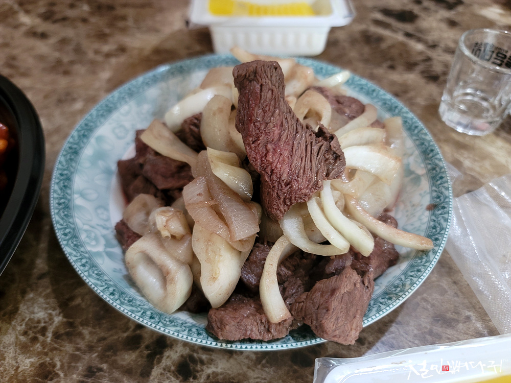 버터로 구운 소고기와 양파, 마늘,
