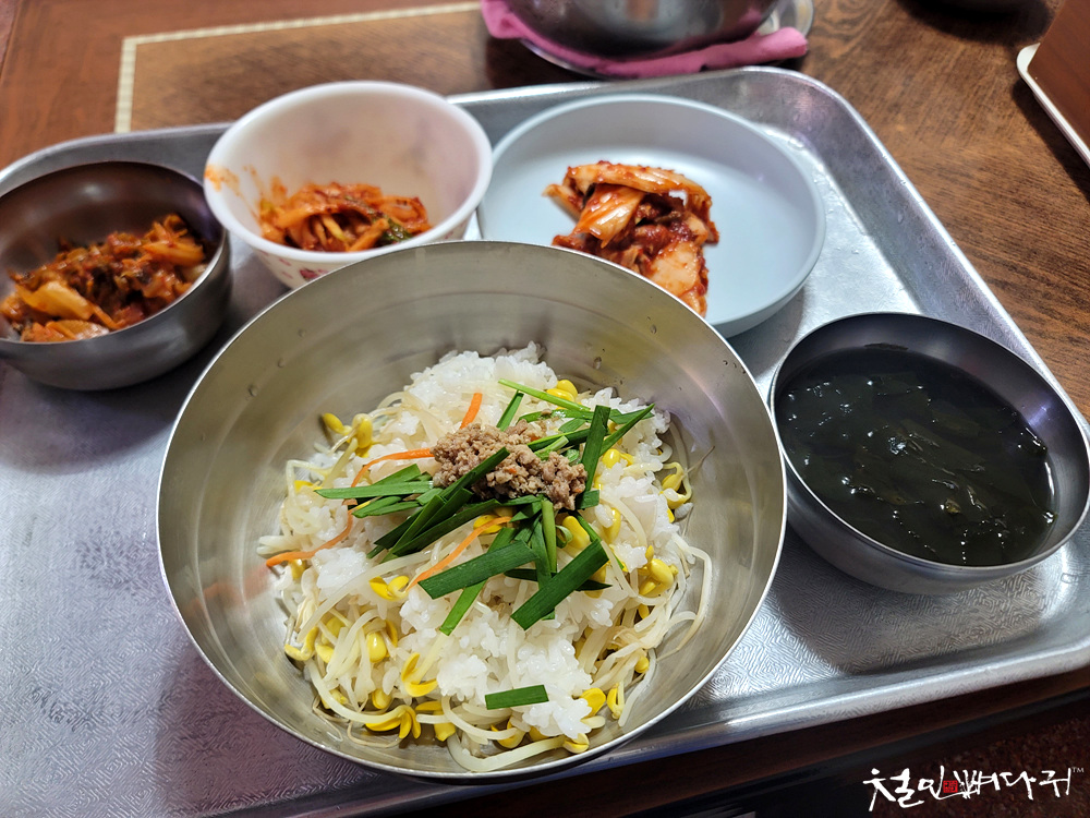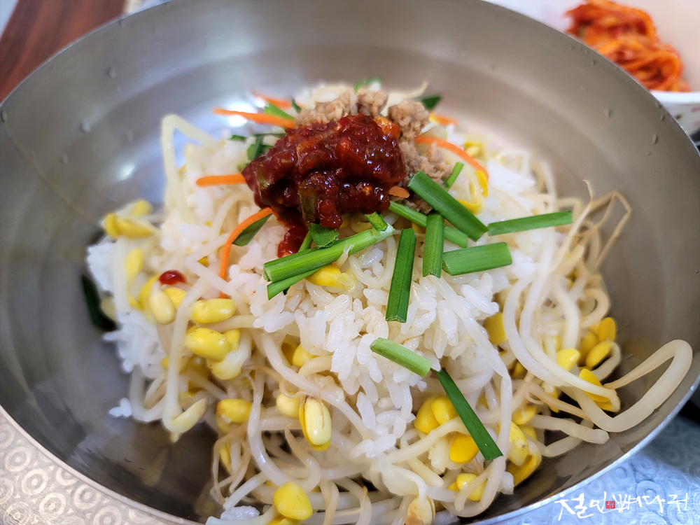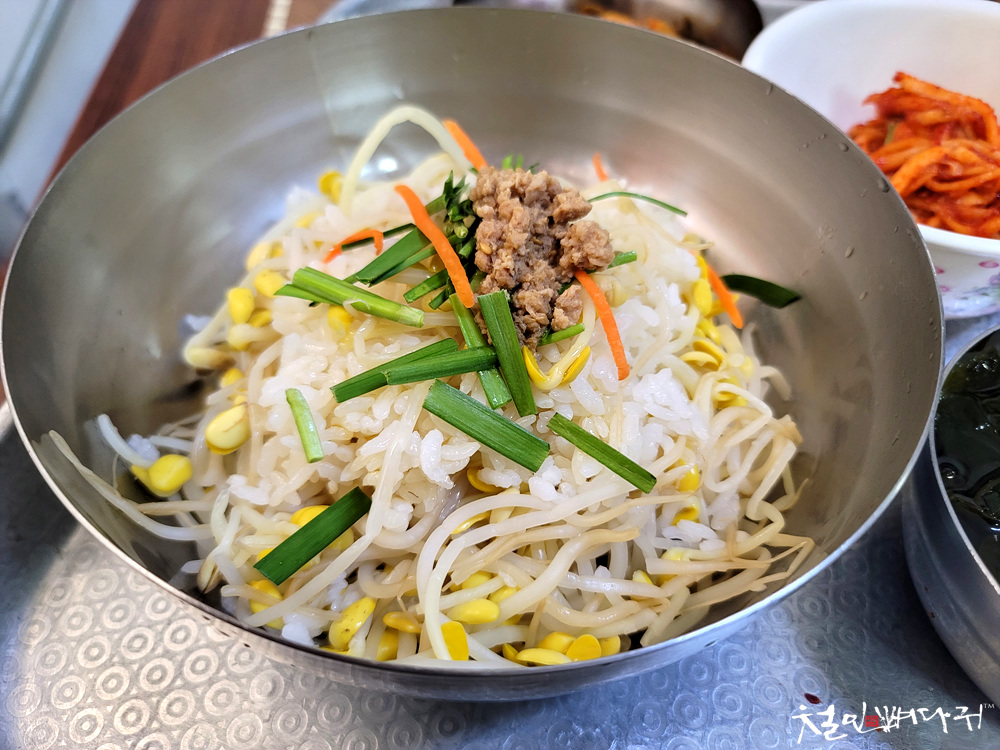 냉면그릇에 콩나물밥이 담겨 나오는데,