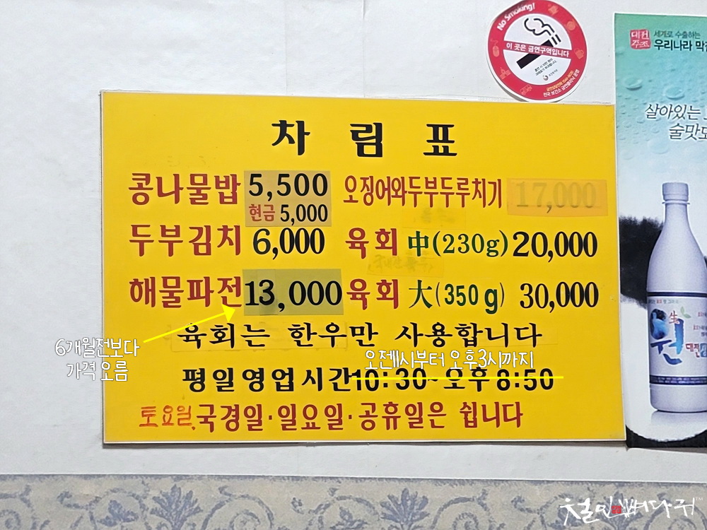 콩나물밥과 다른 음식들은 그대로 입니다.