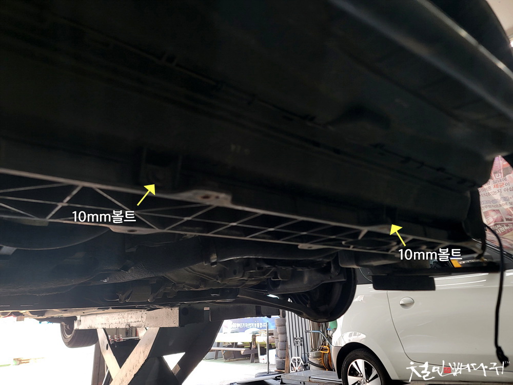 아래쪽에 2개의 10mm볼트를 풀어주고