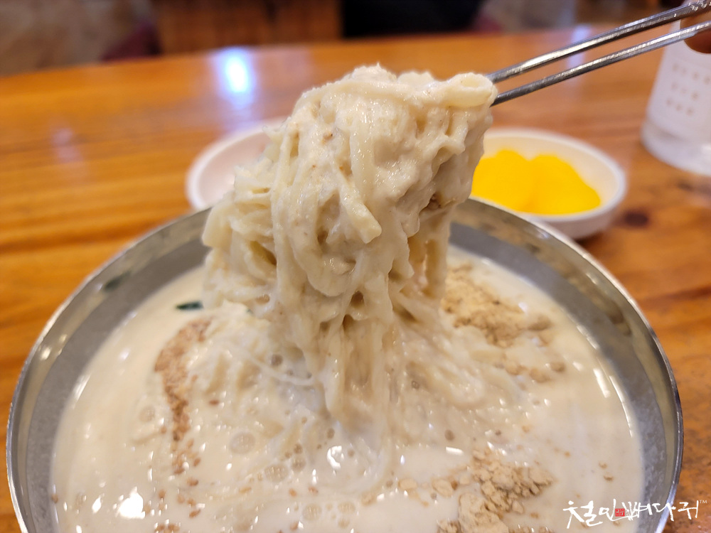 진하다는 느낌을 받는 콩국수입니다.