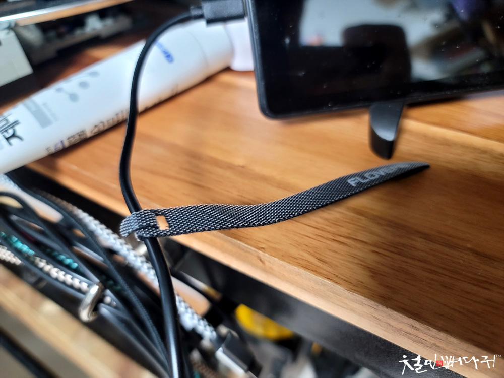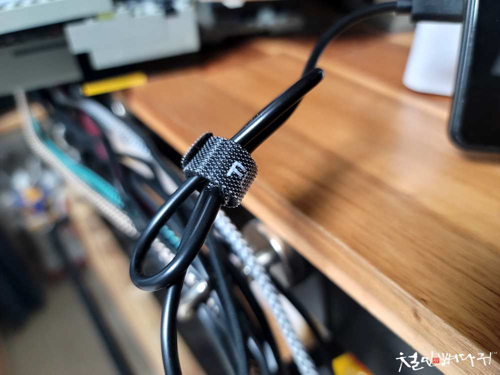 케이블에 벨크로 끈을 메달아두고,