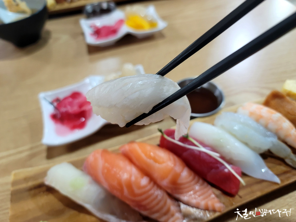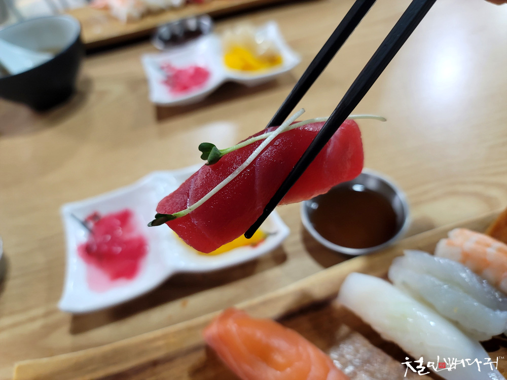 초밥 먹으면서 초밥을 잘 넘어가도록