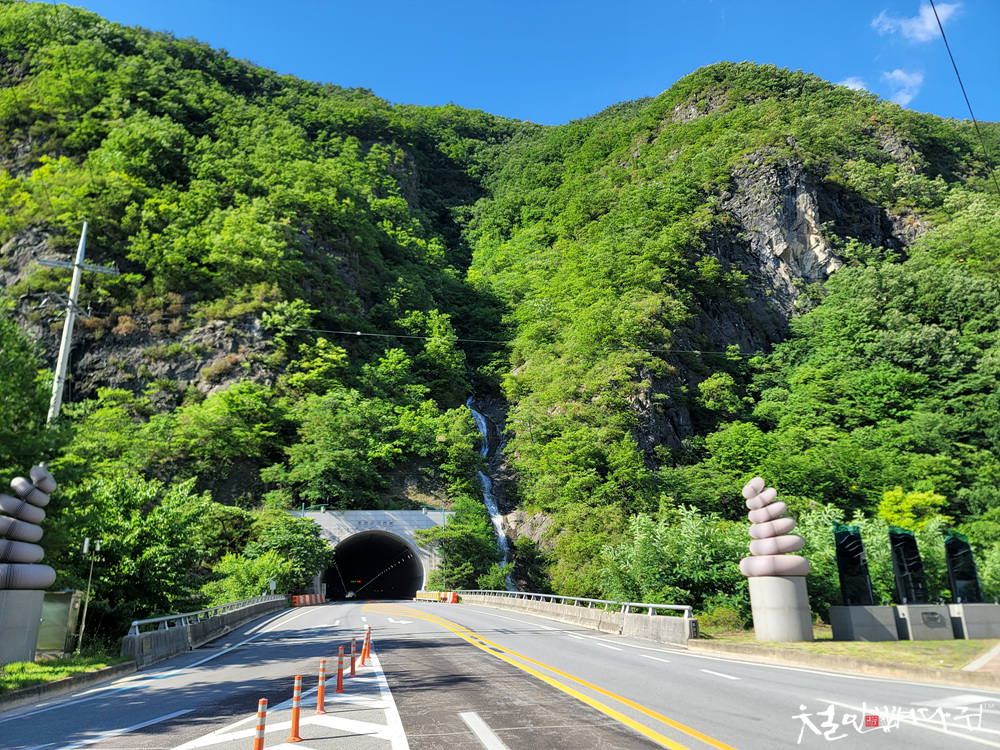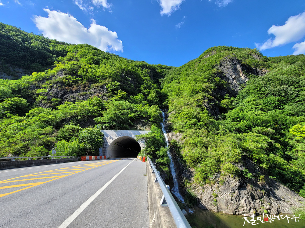 약물내기휴게소가 있는 곳 앞에 터널과 폭포수가