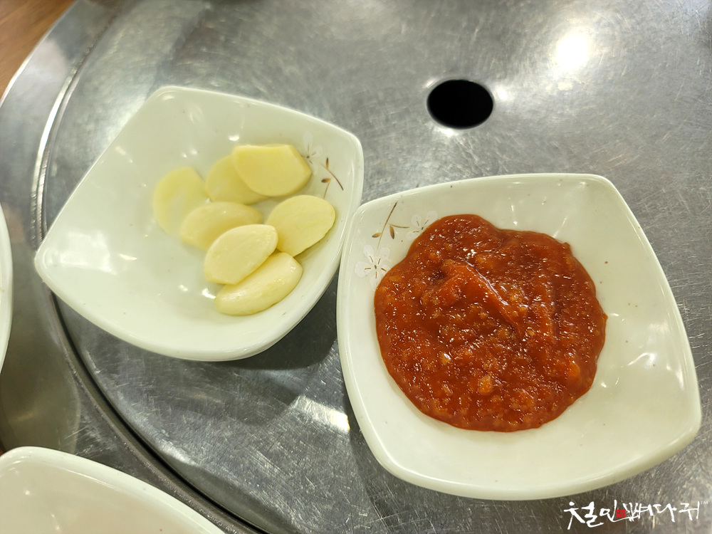 마늘과 쌈장도 있어서 쌈 싸먹기 좋습니다.