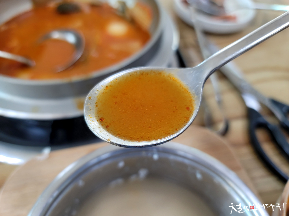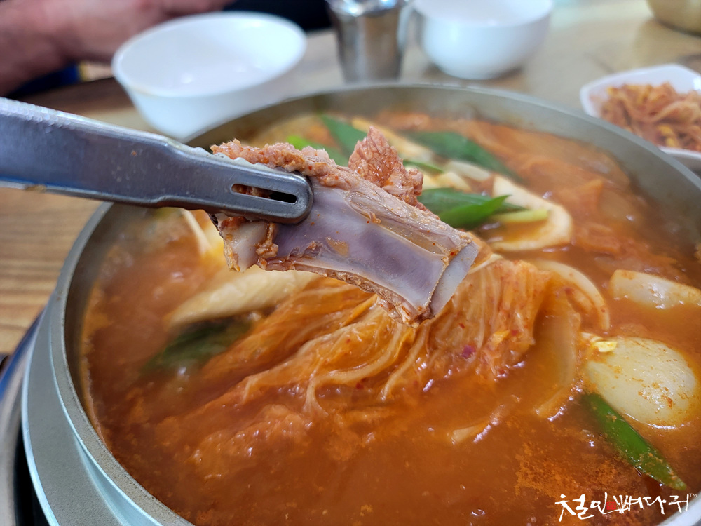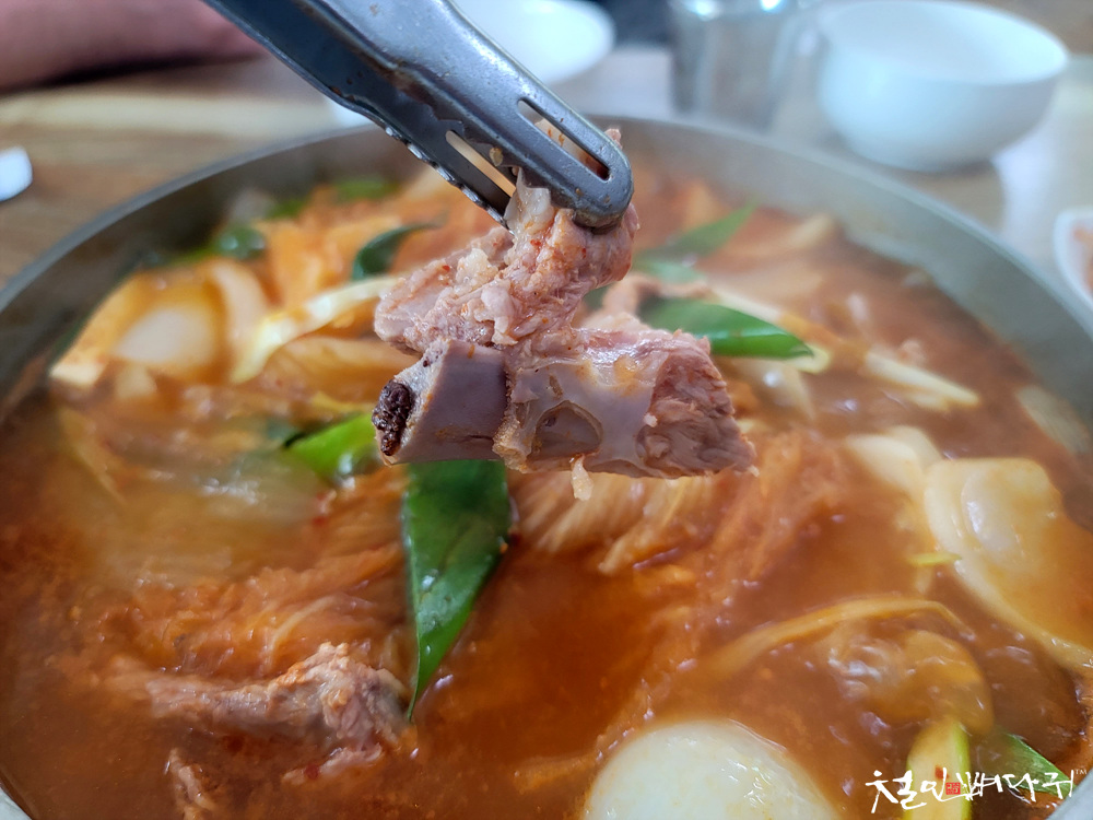 솥단지에 갈비김치찌개가 나왔는데,