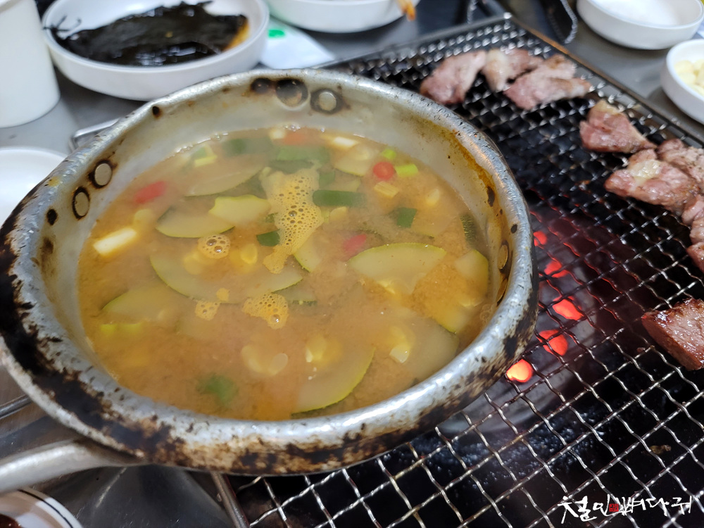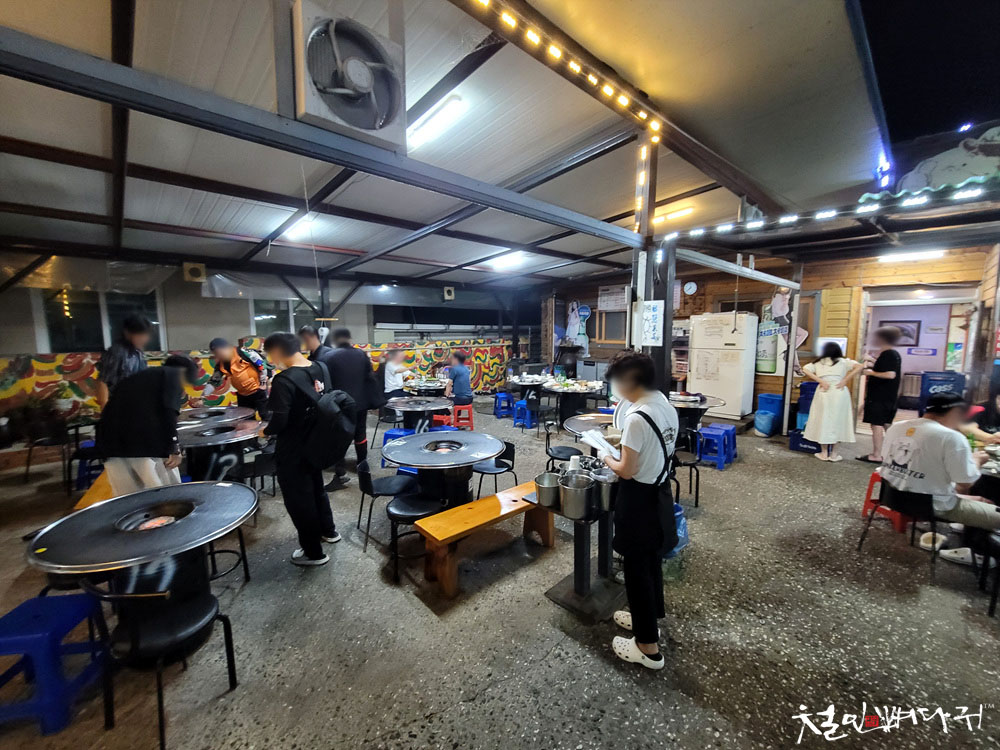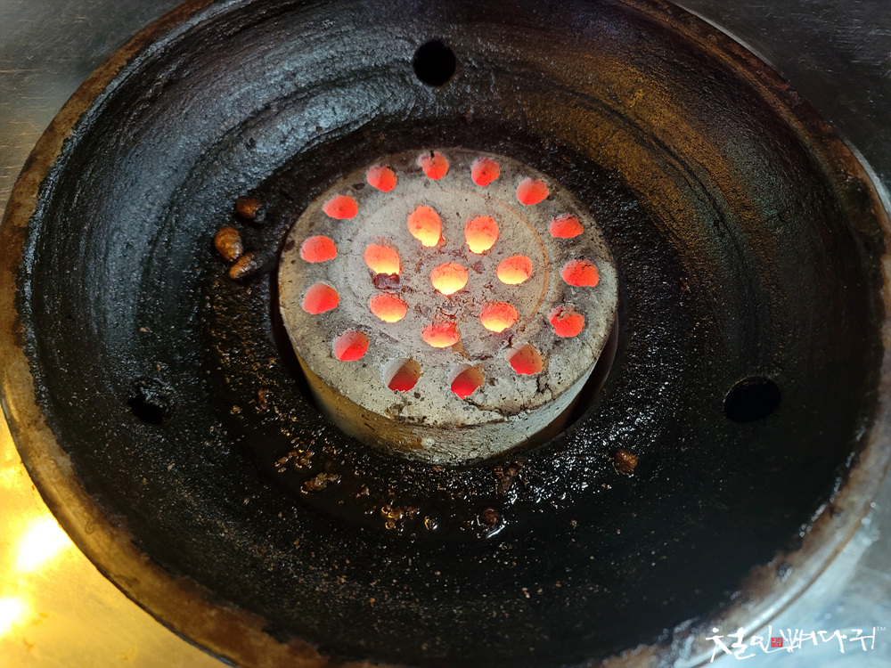연탄불에 고기를 구워먹는 구조입니다.