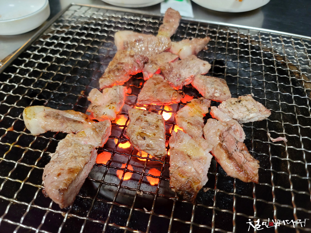 소고기용 구이석쇠가 연탄위에 올려지고,
