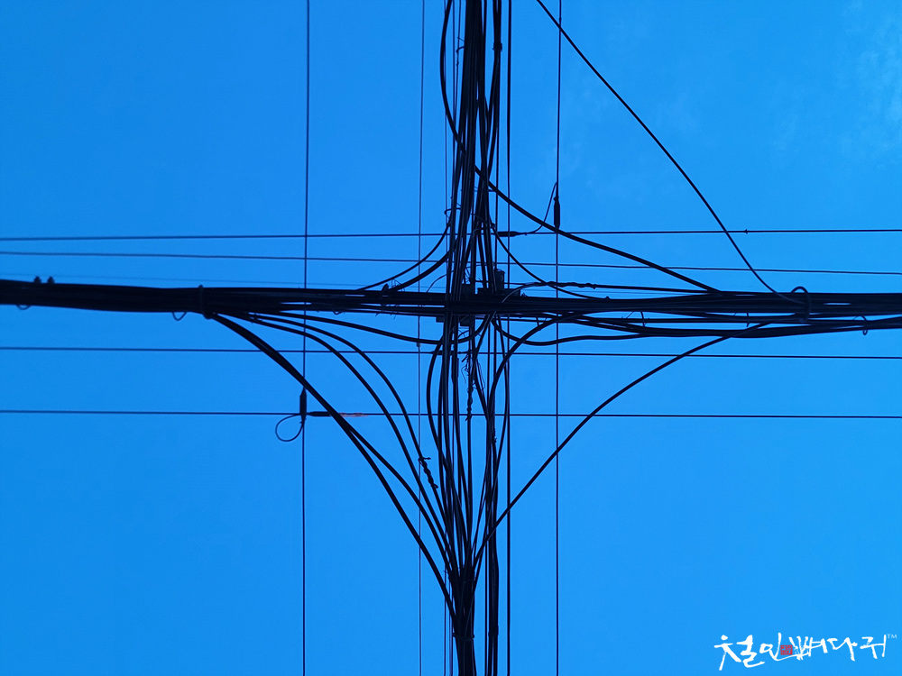 사람 살아가는 것처럼 얽혀있는 전깃줄을