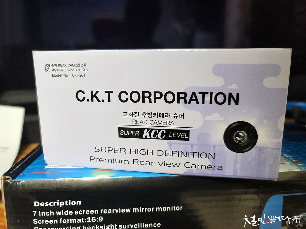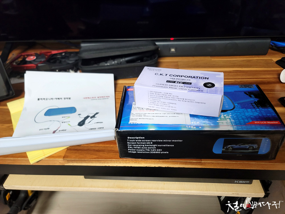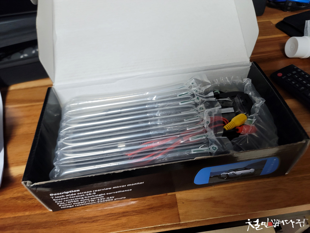 7인치 룸미러모니터의 박스에 장착전