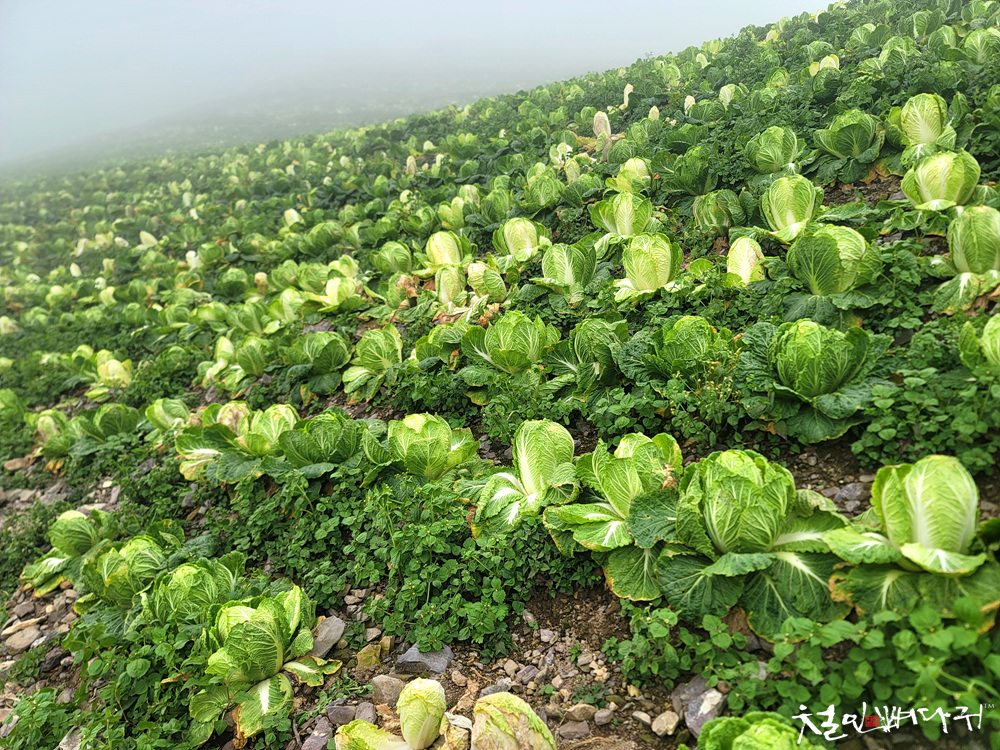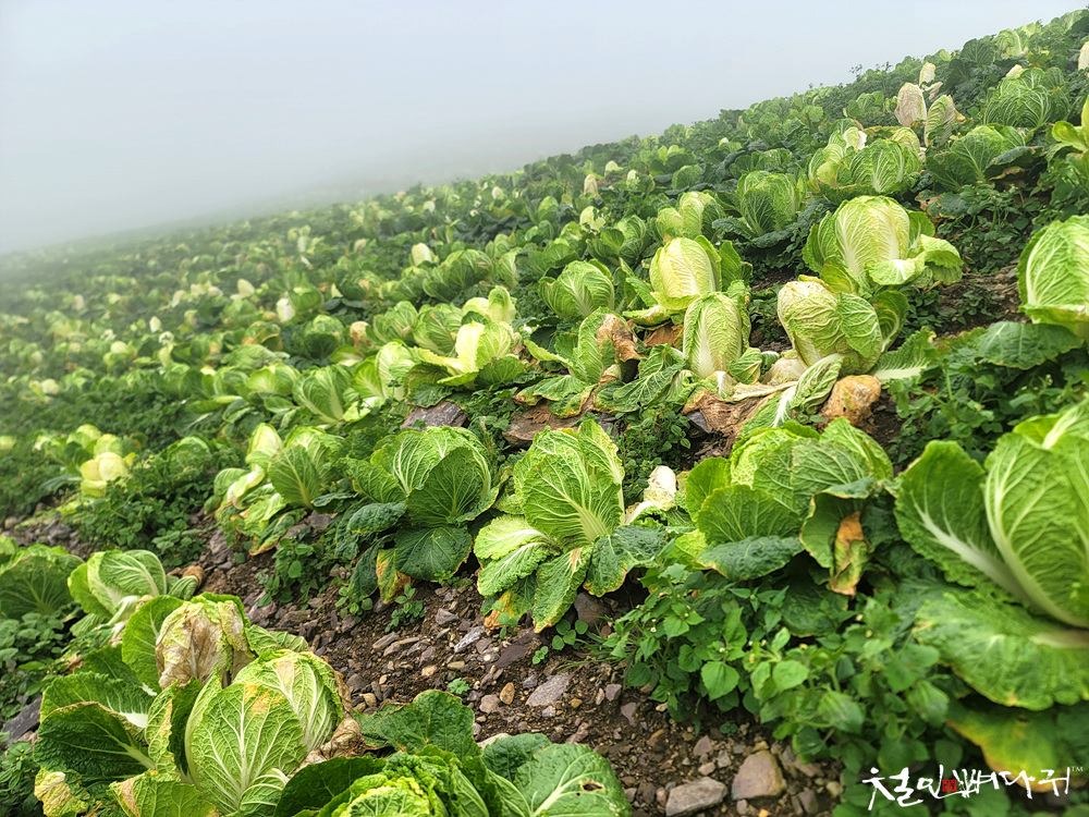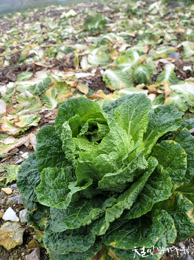 고랭지배추밭의 배추들을 수확했는데,