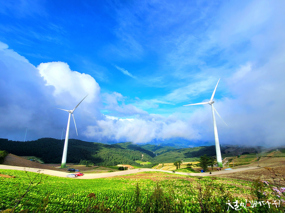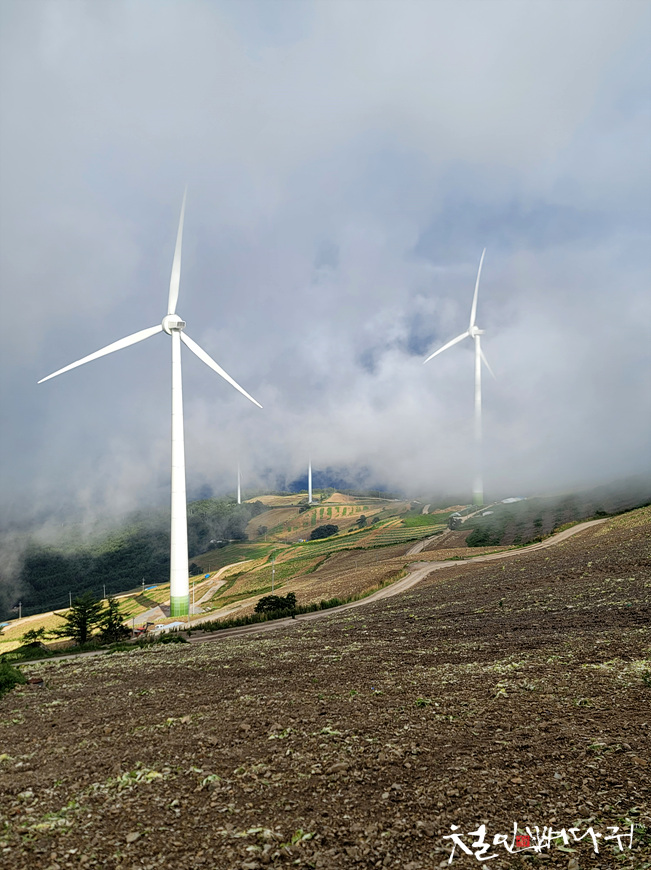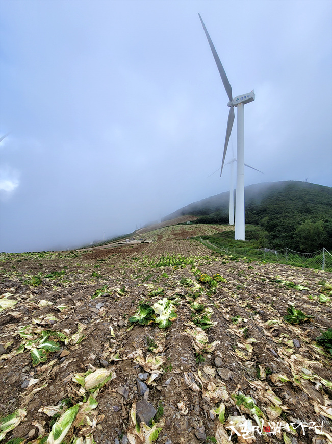 태백 매봉산 풍력발전단지는 고랭지배추밭이