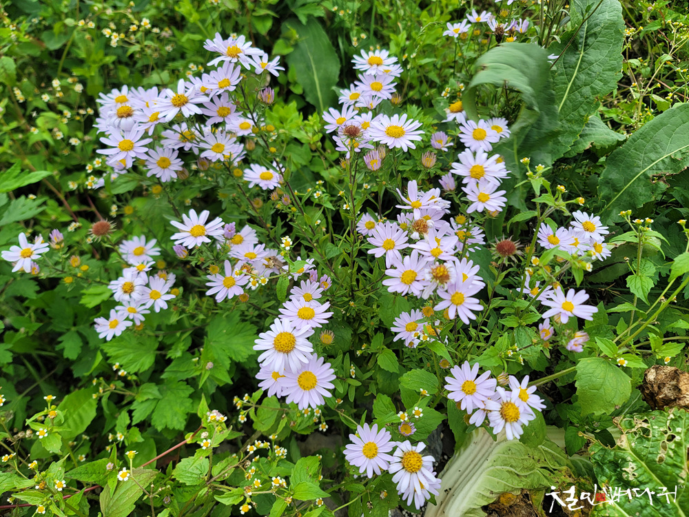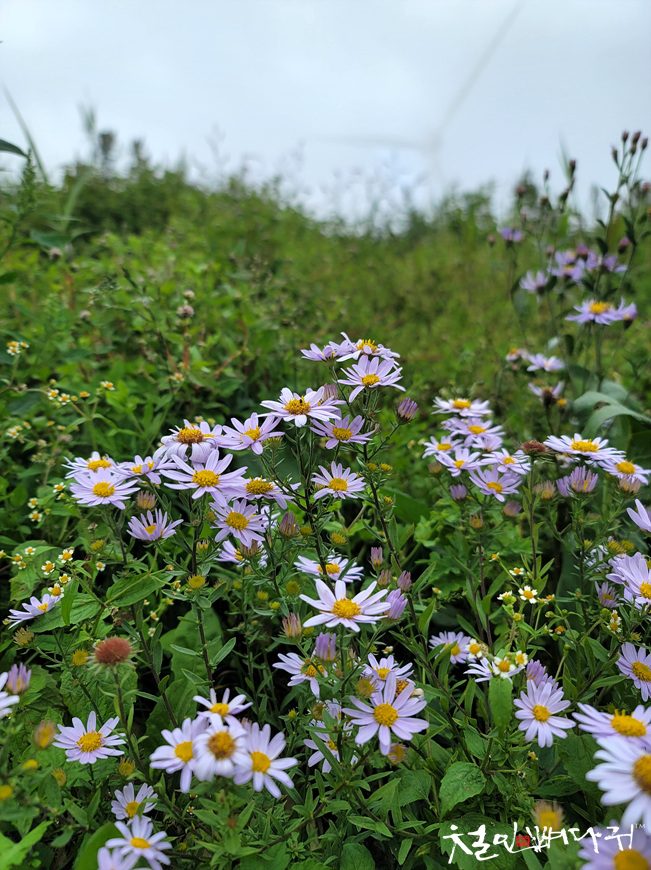지대가 높은 곳에서 구절초가 피어있고,