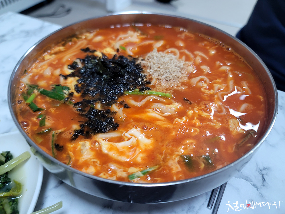몸살 기운의 친구가 먹은 얼큰이칼국수입니다.
