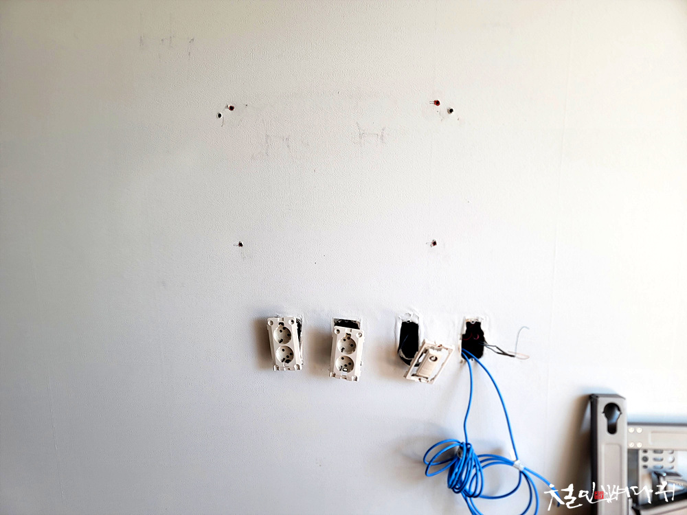 이사 전 인테리어중이라 벽면 콘센트 들도