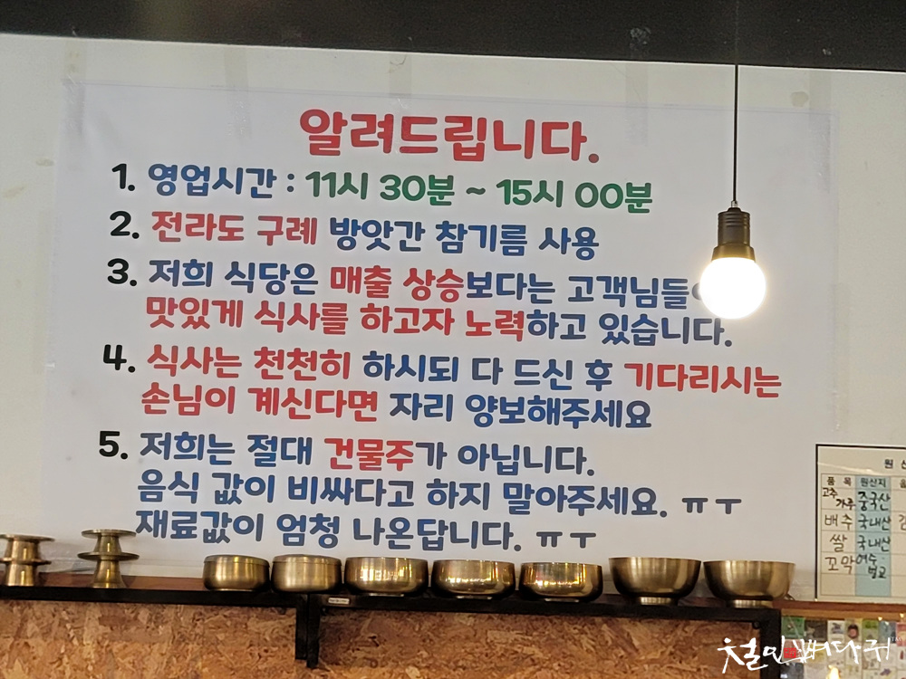 영업시간 안내와 쉬는날은 참고하세요.