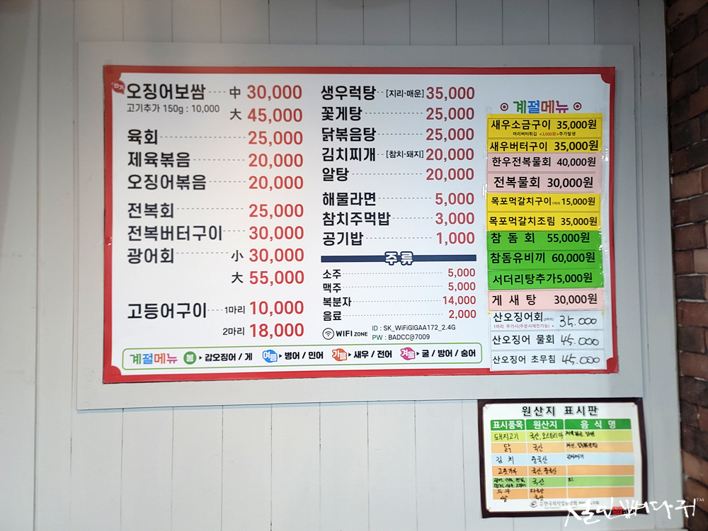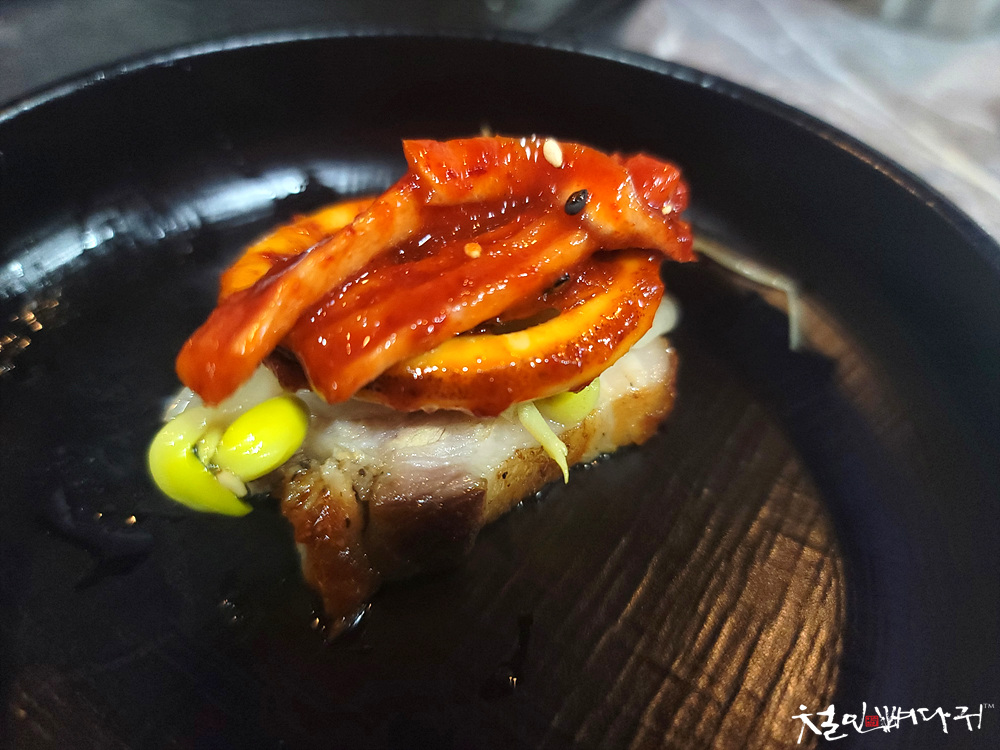 오징어보쌈과 계절메뉴의 새우버터구이를 주문했습니다.