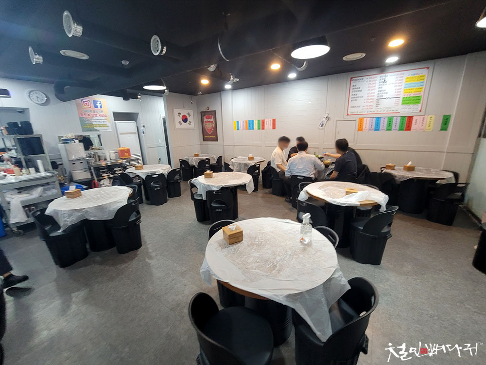 저녁을 먹으러 따라갔는데, 분위기는 술집입니다.