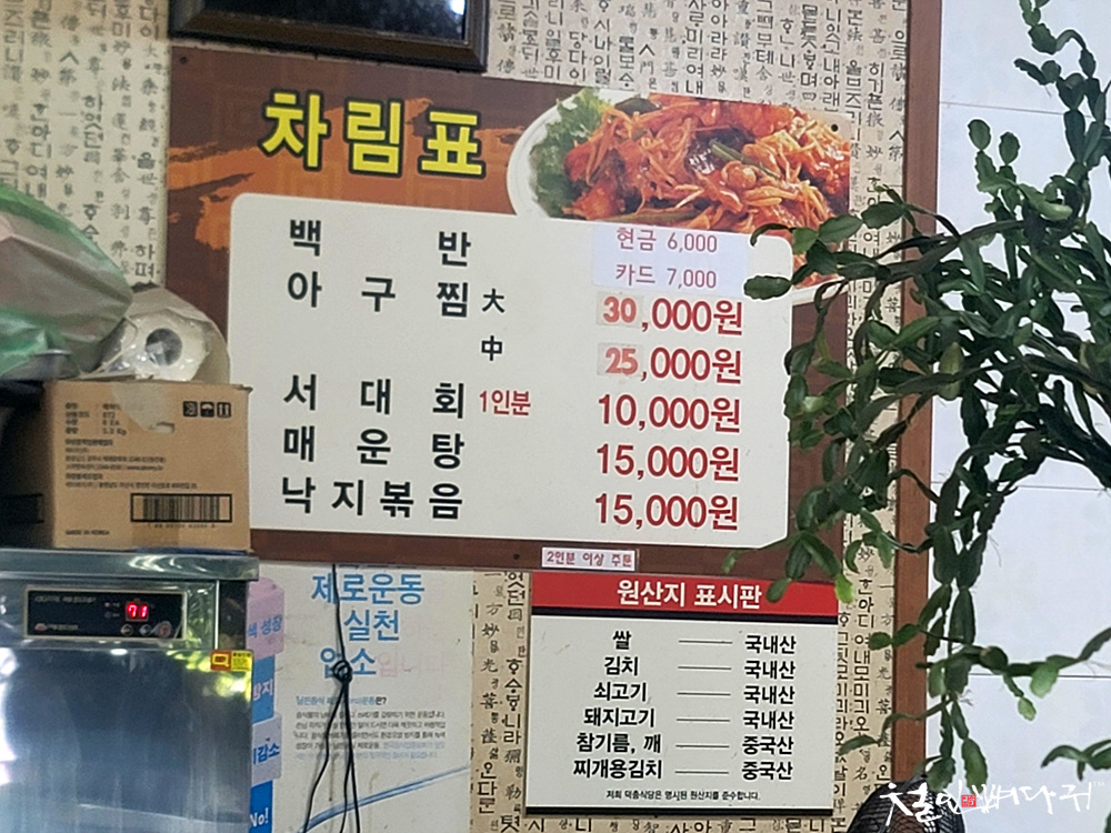 왼쪽의 서대회는 1만원이고,