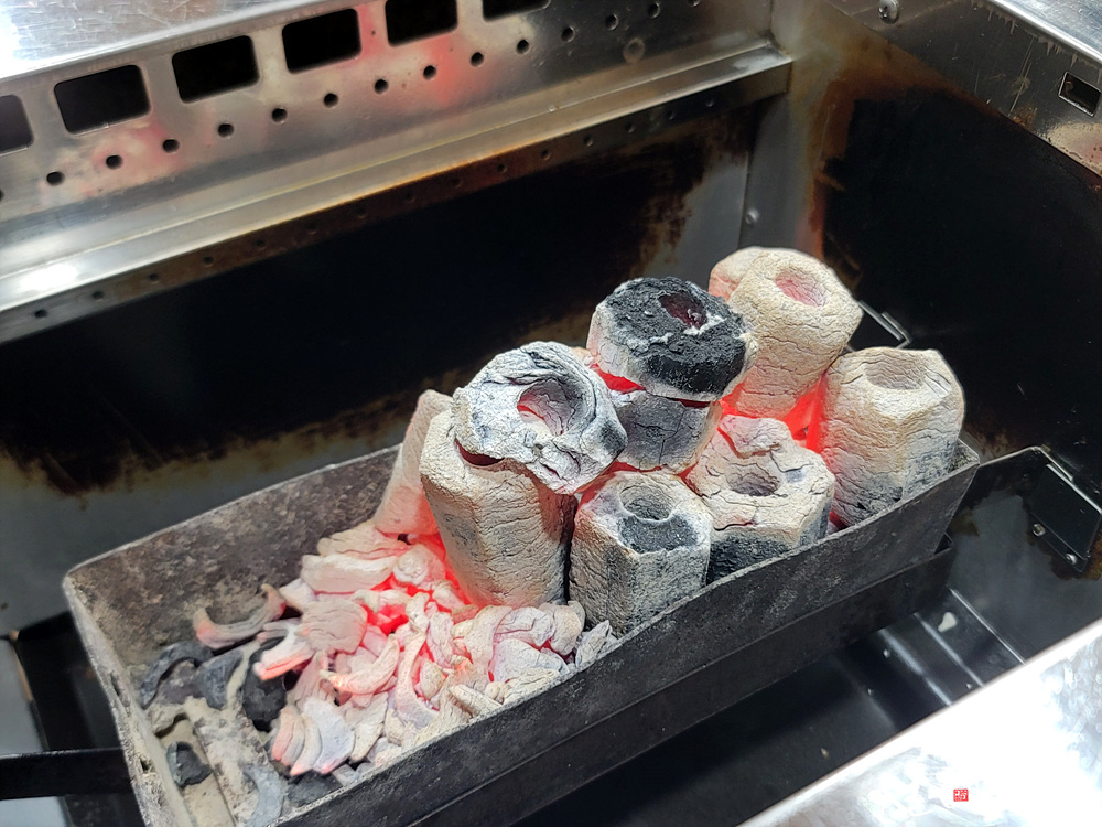 숯탄을 사용한 고기 굽기가 되겠네요.
