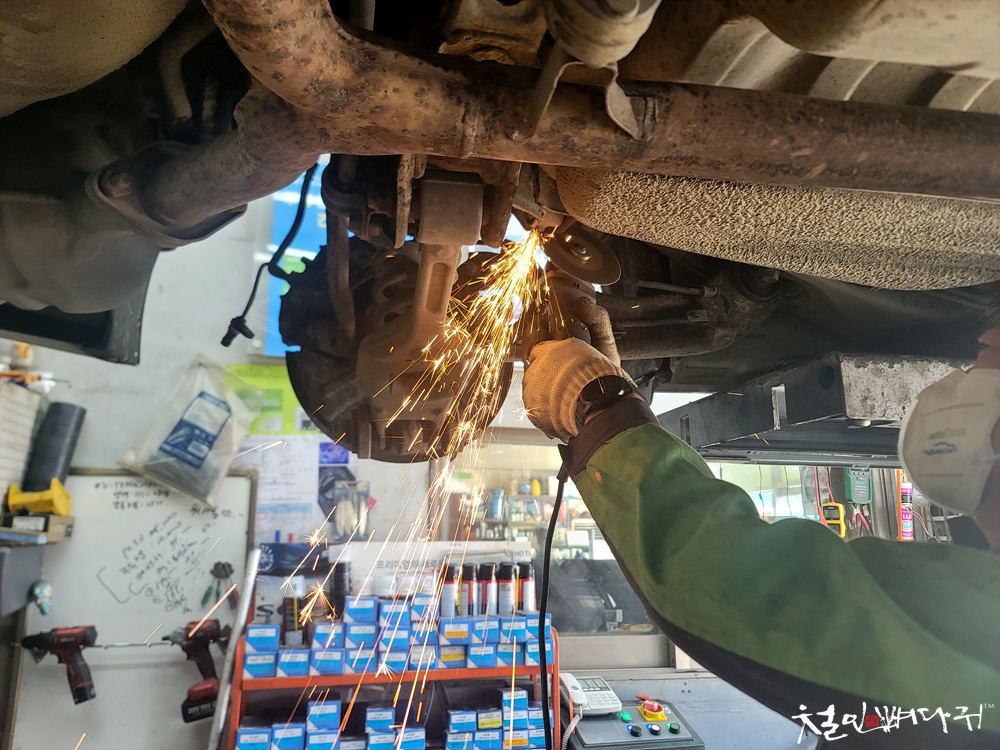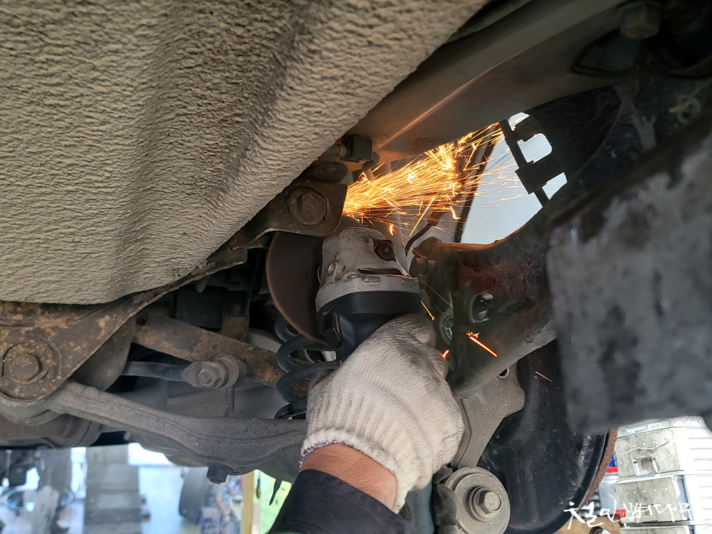 그라인더로 볼트를 잘라내는 작업을 해야 합니다.