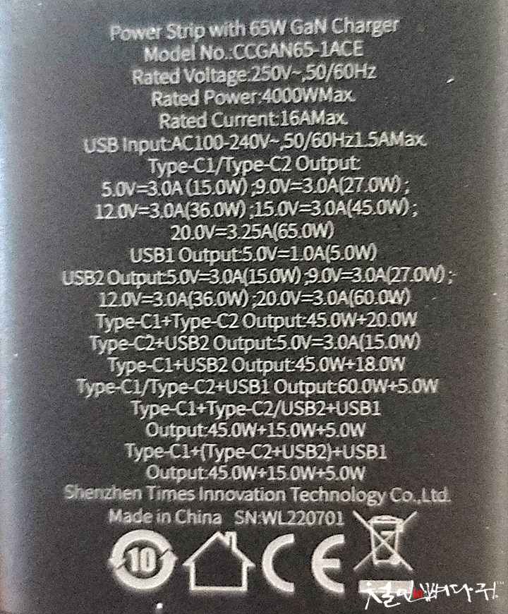 Baseus 65W GaN3 Pro 220V 충전기