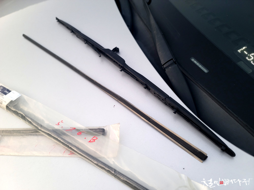 앞유리의 와이퍼 고무날을 모두 교체했습니다.